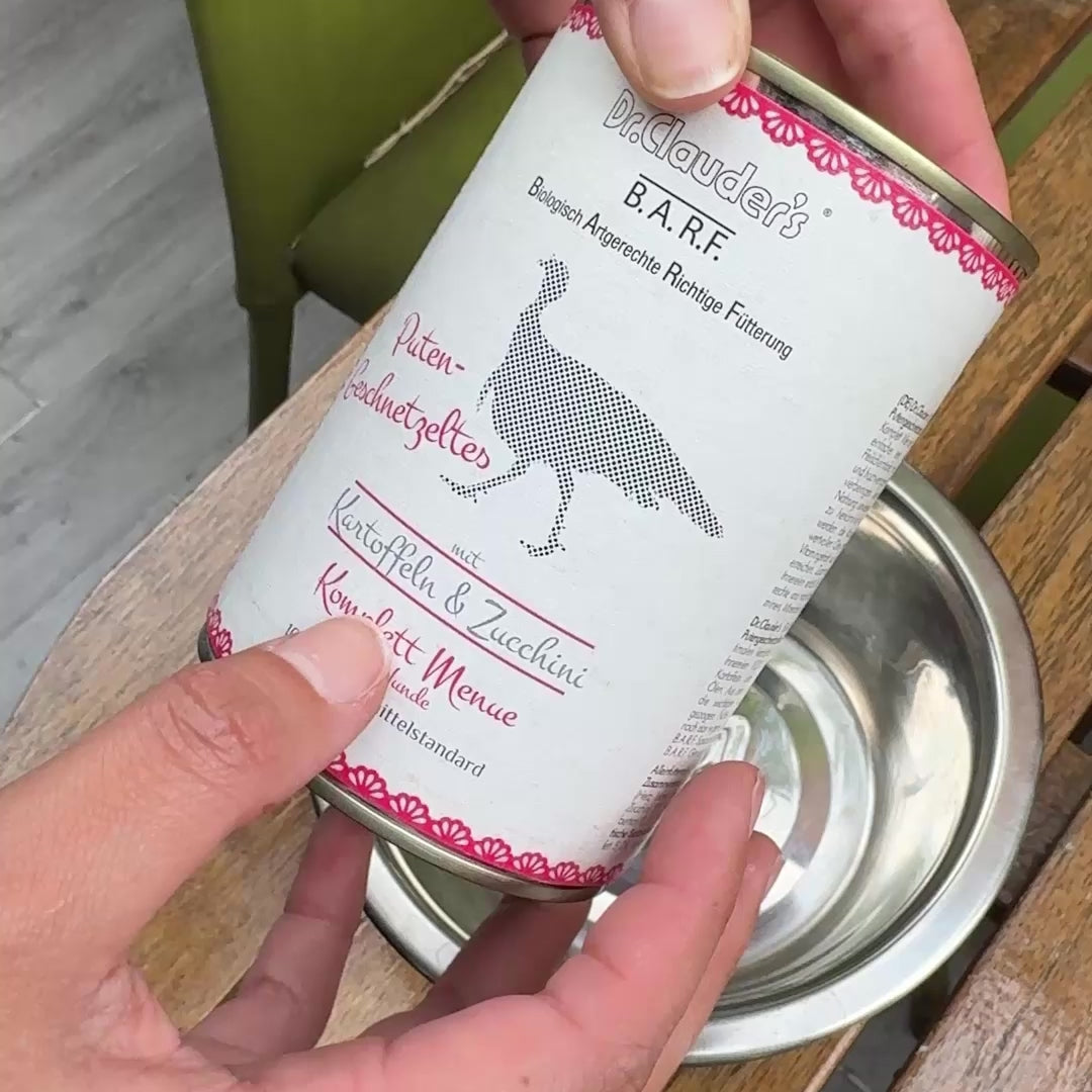 💡 Consejo PRO: Al abrir nuestras latas de estilo BARF cocinado, notarás una "gelatina" natural. ¡No la deseches! Son los puros jugos de la carne, repletos de aminoácidos y nutrientes que a tu perro le encantarán.